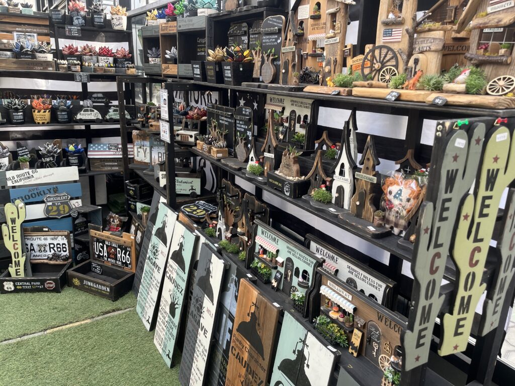木で作ったラックや布製アガベを販売するショップ。