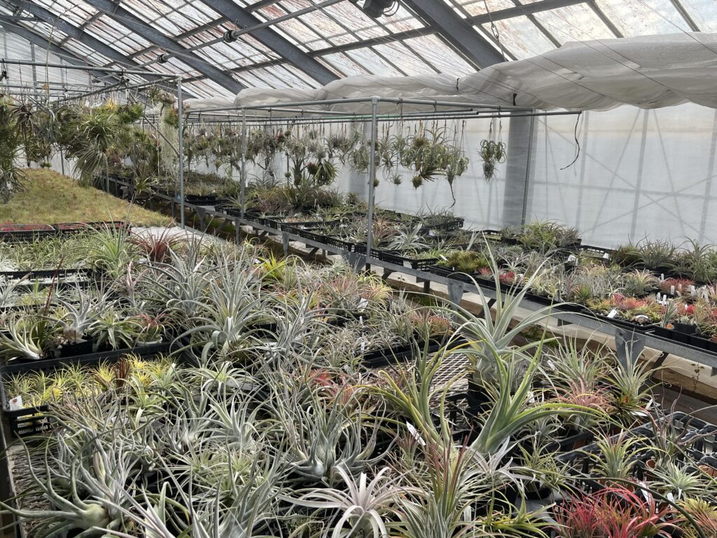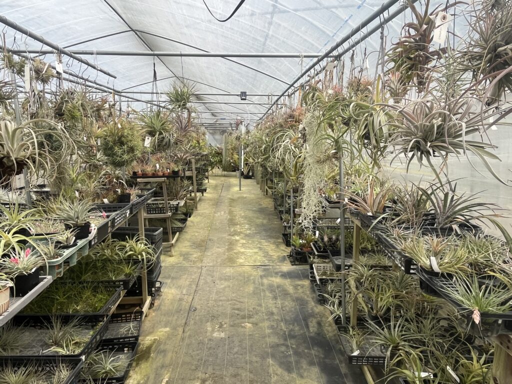 温室一面チランジアだらけ。しかもここにはマニア心を刺激するようなチランジア以外の植物もそろっています。